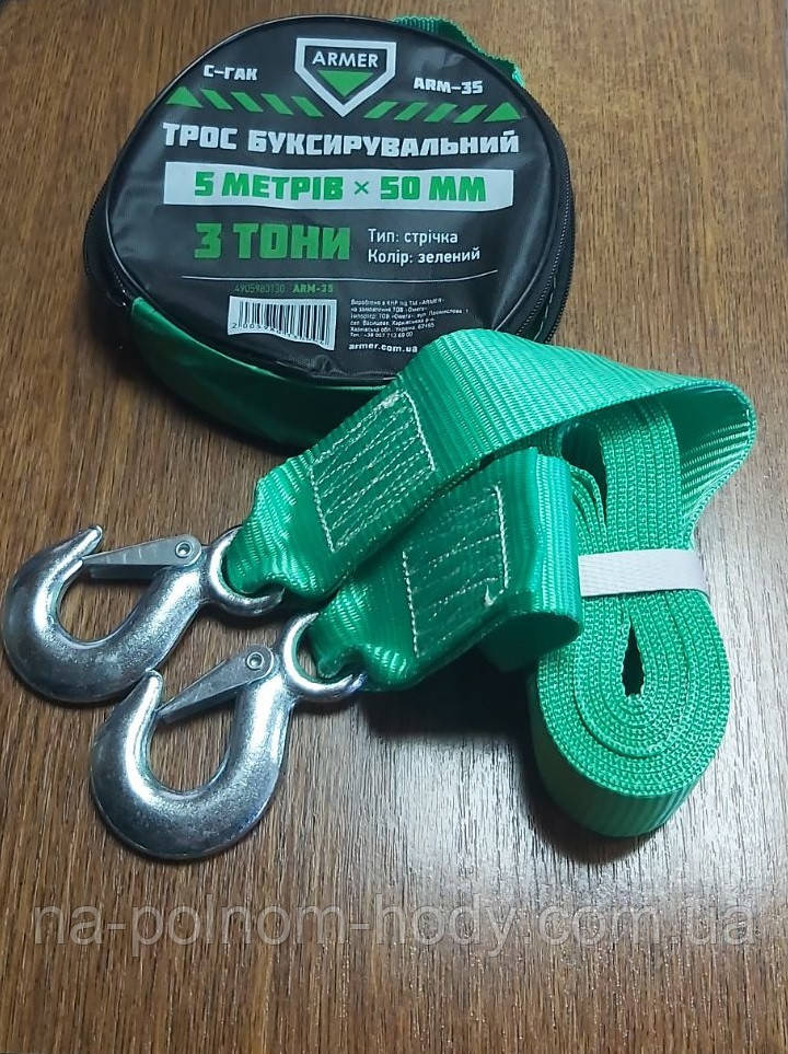 Трос буксирувальний 3 тони, стрічка 5 метрів * 50 мм